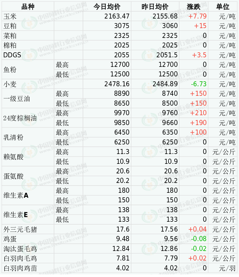2024年11月11日 国内饲料原料与养殖行情汇总