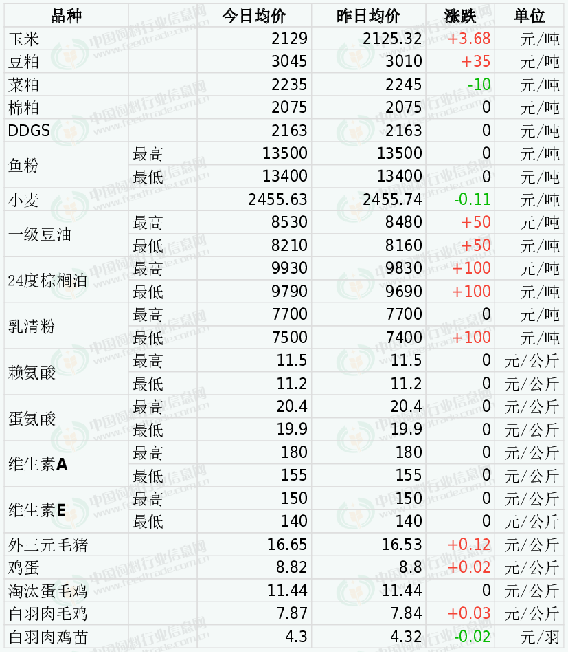 2024年11月18日 国内饲料原料与养殖行情汇总