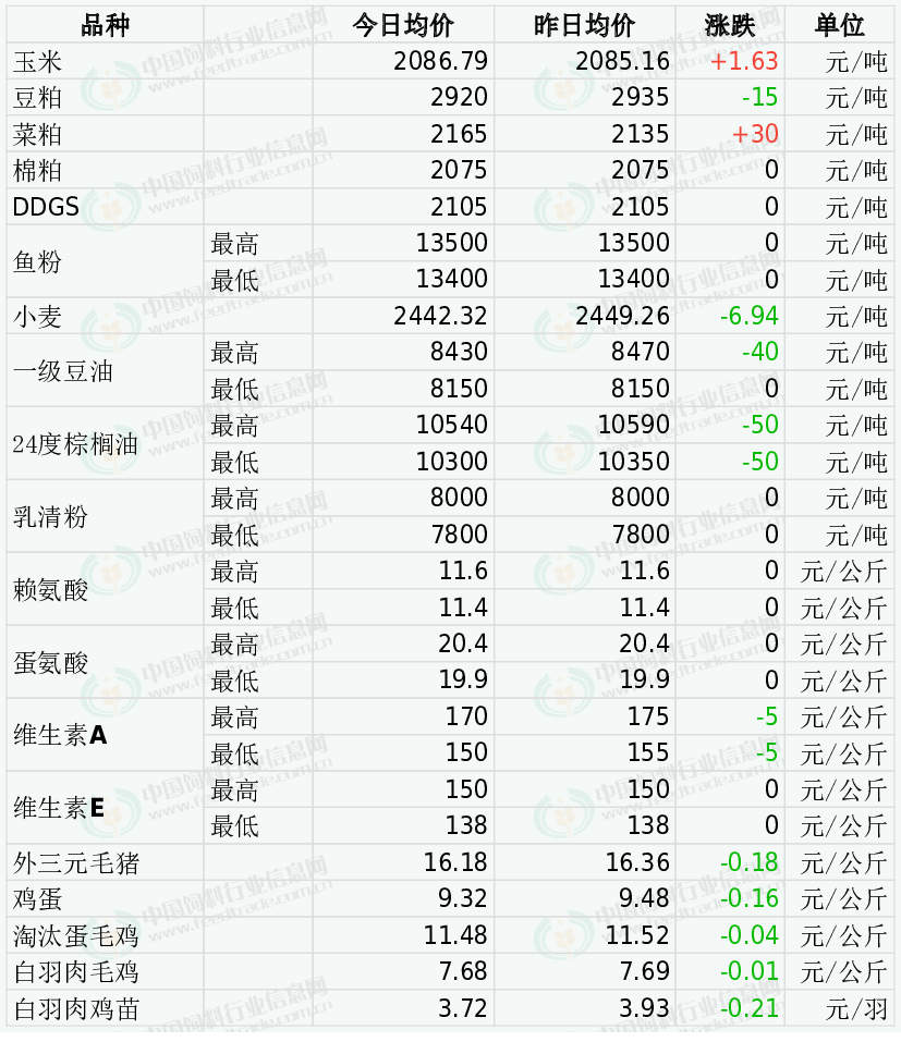 2024年12月16日 国内饲料原料与养殖行情汇总