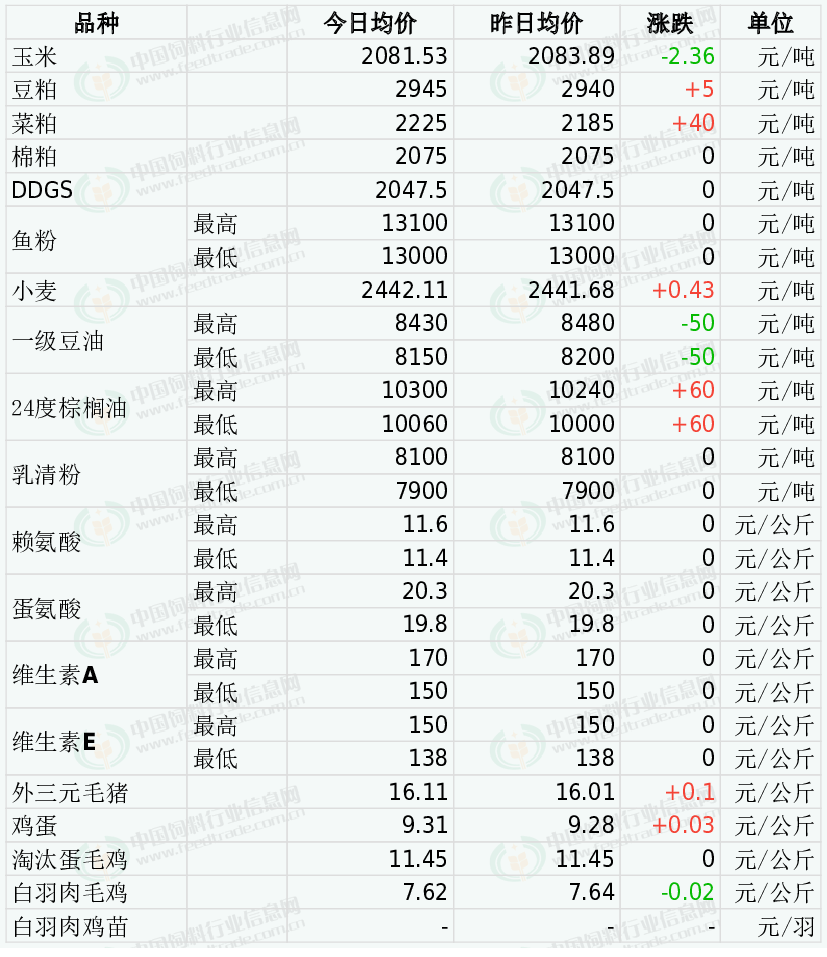 2024年12月23日 国内饲料原料与养殖行情汇总
