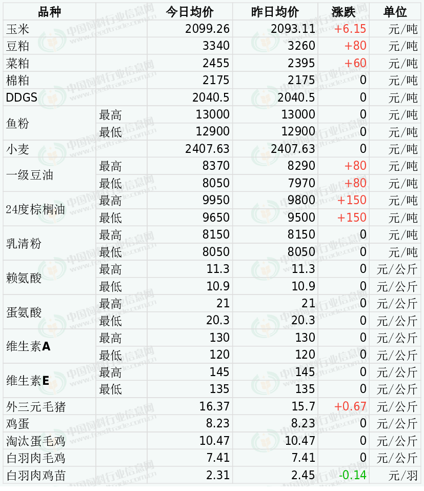2025年2月10日 国内饲料原料与养殖行情汇总