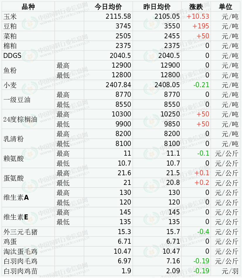 2025年2月5日 国内饲料原料与养殖行情汇总