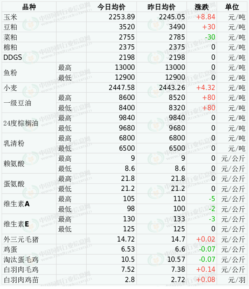 2025年3月24日 国内饲料原料与养殖行情汇总