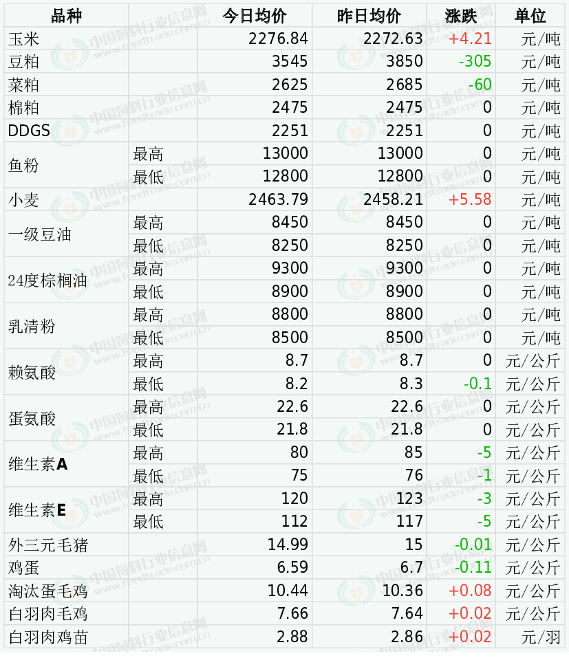 2025年4月21日 国内饲料原料与养殖行情汇总