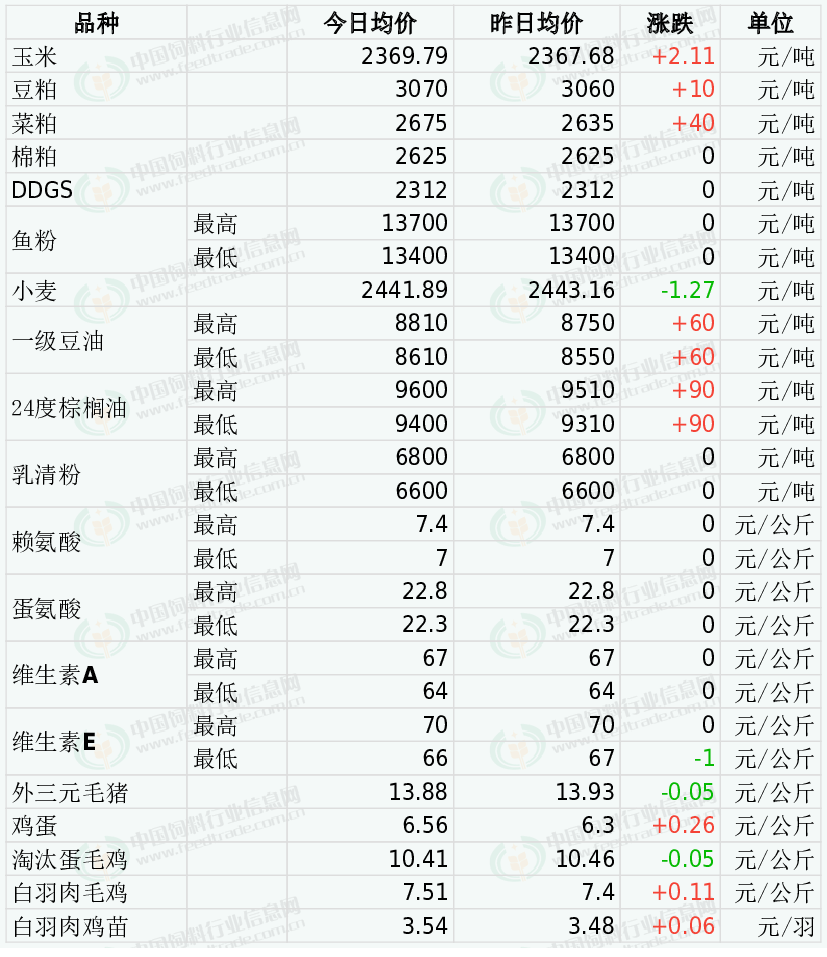 2025年8月11日 国内饲料原料与养殖行情汇总